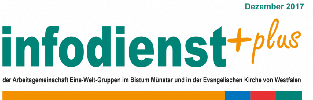 Liebe Freundinnen und Freunde der AG Eine-Welt-Gruppen im Bistum Münster und in der Ev. Kirche von Westfalen, vor Weihnachten und dem Jahreswechsel erhalten Sie wieder unseren Newsletter, den InfodienstPlus. Wir freuen uns, wenn Sie anderen Interessierten diesen Infodienst weiterleiten. Wir wünschen Ihnen eine gesegnete Advents- und Weihnachtszeit und verbleiben mit freundlichen Grüßen